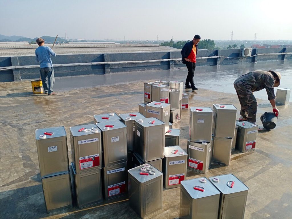 Thi công chống thấm lộ thiên bằng Polyurethane 1 TP nhập Han Quốc Koli urethan Lớp lót Koli 100 định