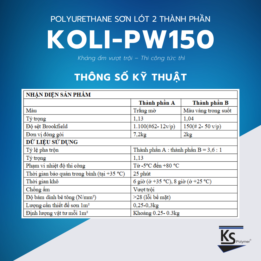 Sơn lót nền ẩm KOLI-PW150 là giải pháp lý tưởng cho các bề mặt bị ướt, không cần đợt khô, dễ bị ẩm mốc. Với khả năng kháng ẩm ướt – tăng độ bền lớp chống thấm tiếp theo.